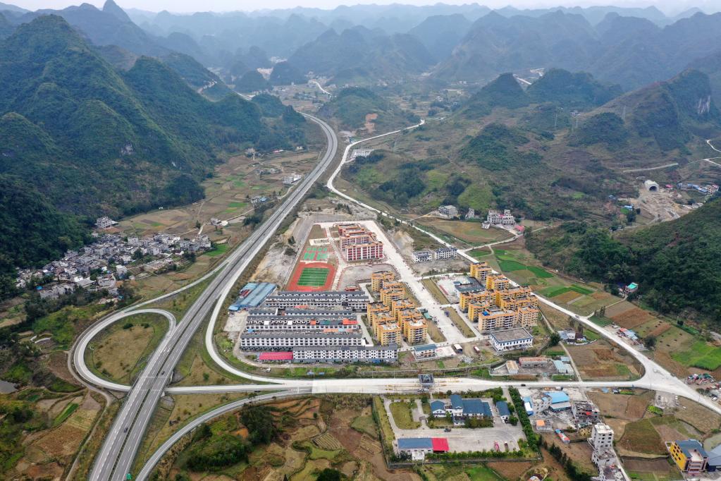 Aerial photo taken on Dec. 29, 2021 shows a poverty alleviation relocation site of Yong'an Township of Du'an Yao Autonomous County, south China's Guangxi Zhuang Autonomous Region. (Xinhua/Lu Boan)