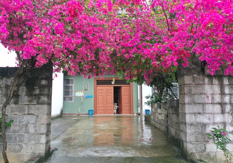 Photo taken on April 7, 2021 shows a courtyard in Dingye Village of Wucun Township, Baise City, south China's Guangxi Zhuang Autonomous Region. (Xinhua/Zhou Hua)