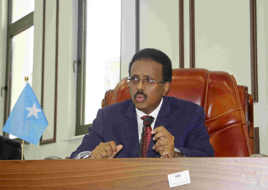 Somali President Mohamed Farmajo addressed the parliament in Mogadishu, Somalia, on May 1, 2021. (Xinhua/Hassan Bashi)