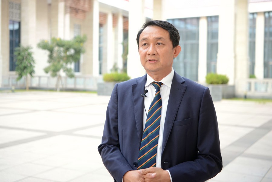 Bounleuth Luangpaseuth, vice president of the Lao National Chamber of Commerce and Industry (LNCCI), speaks in an interview with Xinhua in Vientiane, Laos, Dec. 29, 2021. (Photo by Phouthaphone Sirivong/Xinhua)