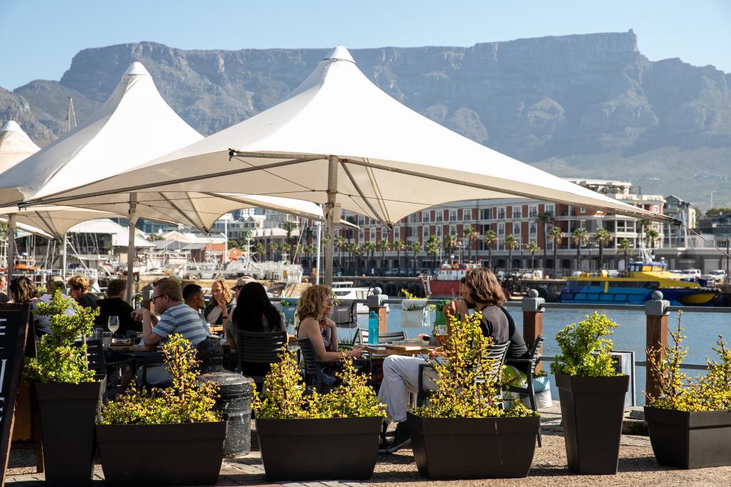 People have meal at a restaurant at V&A Waterfront in Cape Town, South Africa, Dec. 26, 2021. (Xinhua/Lyu Tianran)