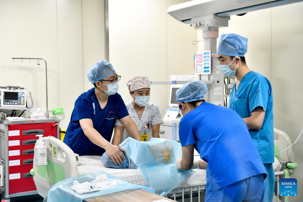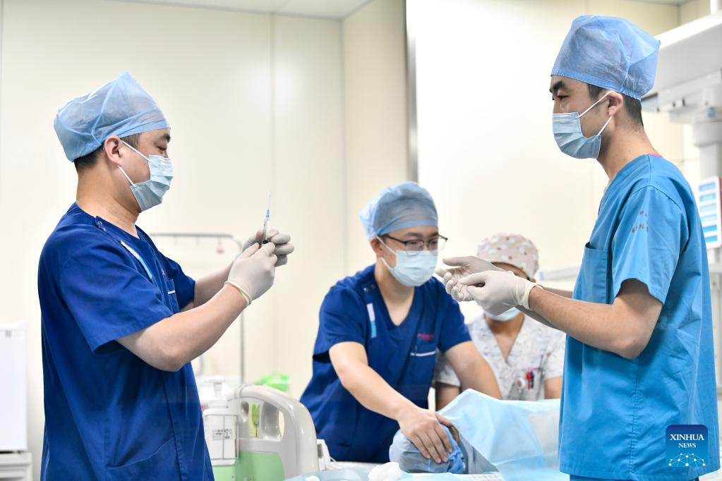 Medical workers prepare to inject Spinraza to a 4-year-old child diagnosed with spinal muscular atrophy (SMA) at a hospital in Zaozhuang, east China's Shandong Province, Jan. 1, 2022. China is striving to improve the diagnosis and treatment of rare diseases.