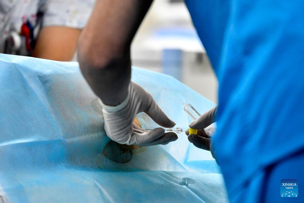 A medical worker injects Spinraza to a 4-year-old child diagnosed with spinal muscular atrophy (SMA) at a hospital in Zaozhuang, east China's Shandong Province, Jan. 1, 2022. China is striving to improve the diagnosis and treatment of rare diseases.
