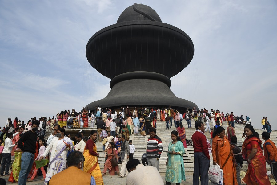 Devotees visit Maha Mrityunjay Temple in Nagaon district of India's northeastern state of Assam, Jan. 1, 2022. (Xinhua/Str)