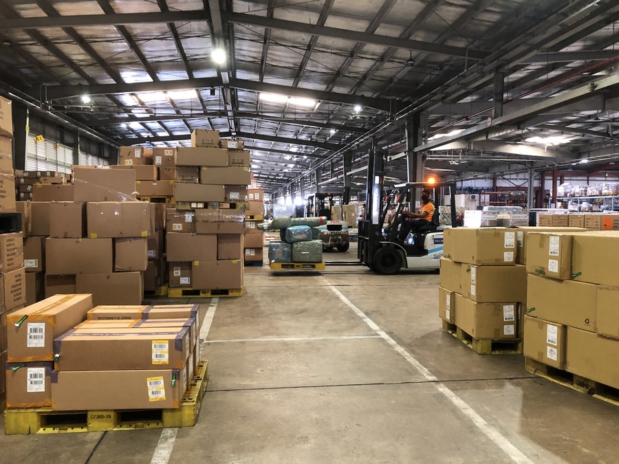 Photo taken on Dec. 31, 2021, shows cargo boxes at the Phnom Penh International Airport's warehouse in Phnom Penh, Cambodia. (Photo by Van Pov/Xinhua)