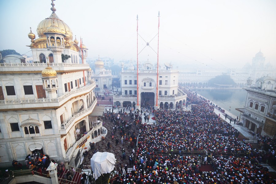 NEW DELHI, Jan. 3 (Xinhua) -- On the first day of the year 2022, Indian devotees paid obeisance at the Golden Temple in Amritsar of India's northern state of Punjab.
