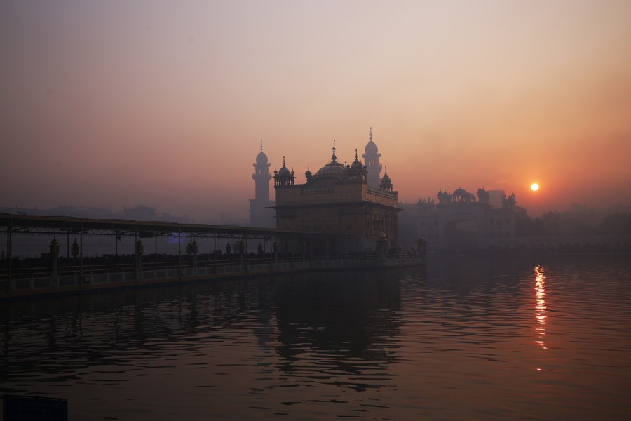 First sun of the New Year rises in the backdrop of the Golden Temple in Amritsar of India's northern Punjab state, Jan. 1, 2022. (Xinhua/Stringer) ■