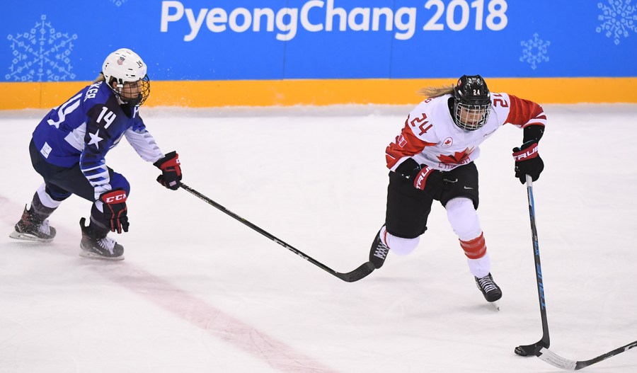 The United States beat Canada 3-2 in a shootout to win the women's ice hockey gold at the 2018 PyeongChang Winter Olympics. (Xinhua/Wang Haofei)