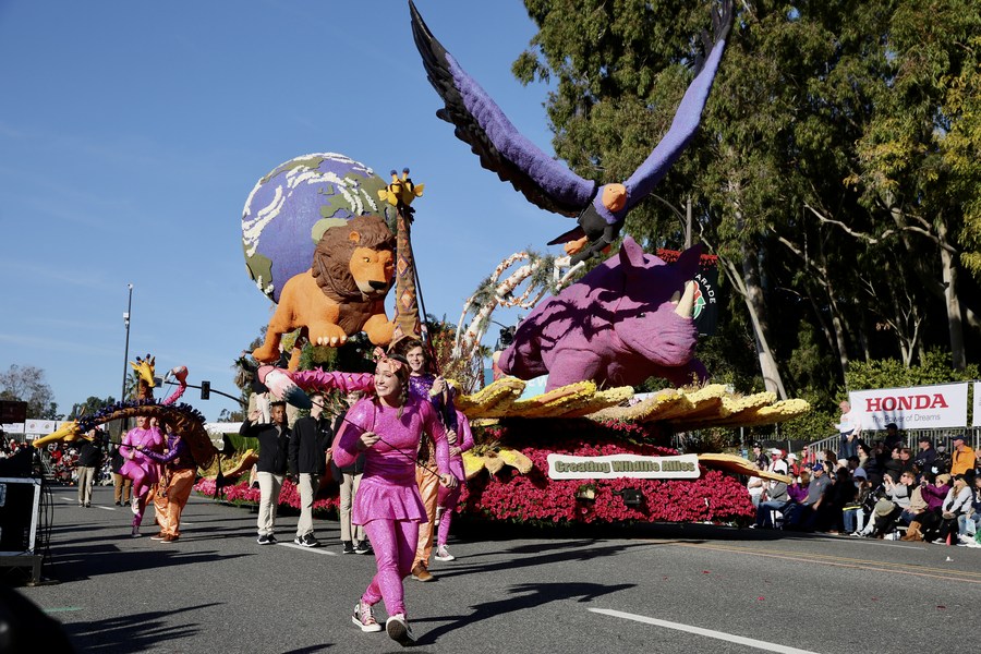PASADENA, the United States, Jan. 3 (Xinhua) -- Pasadena was awash with colors this Saturday, as the beloved Rose Parade, the most famous annual celebration event for New Year in the Los Angeles metropolitan area, returned in full bloom.