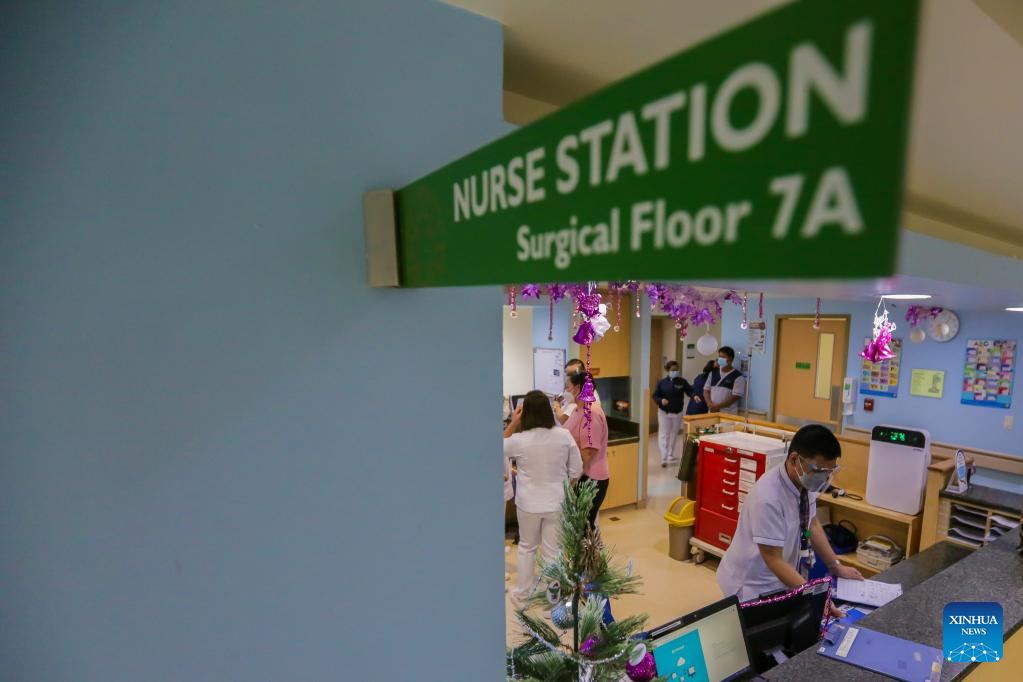 Photo taken on Dec. 13, 2021 shows the nurse station nearby the room of Li Jinxin, a 26-year-old Chinese woman, at the Medical City hospital in Pasig City, the Philippines. Li Jinxin has found her dream of returning home come true after battling a devastating illness for almost two and a half years in the Philippines that nearly cost her life.(Xinhua/Rouelle Umali)