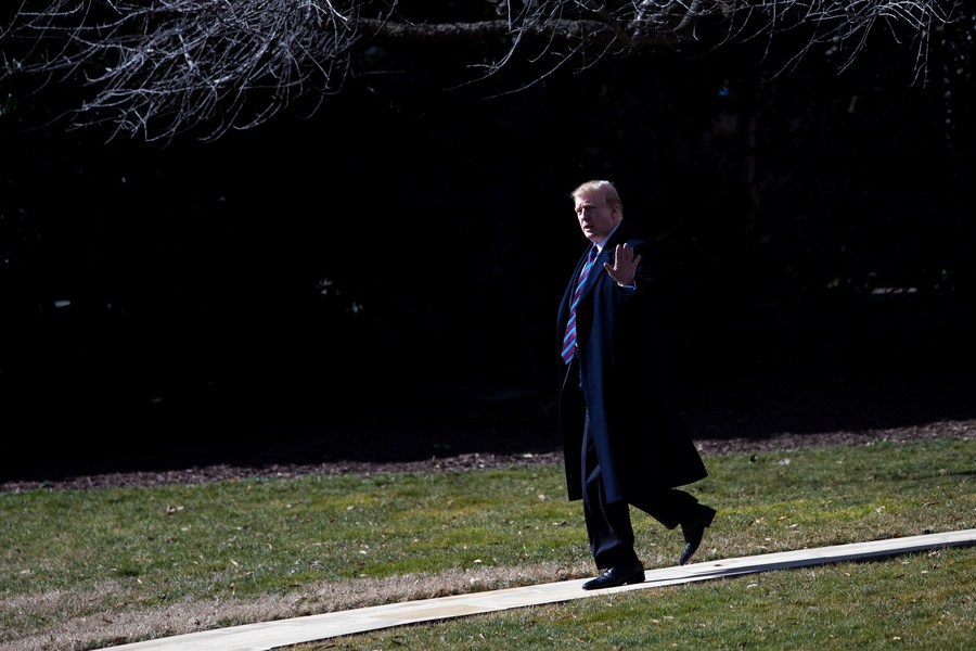 U.S. President Donald Trump departs from the White House in Washington D.C., the United States, Feb. 8, 2019. (Xinhua/Ting Shen)