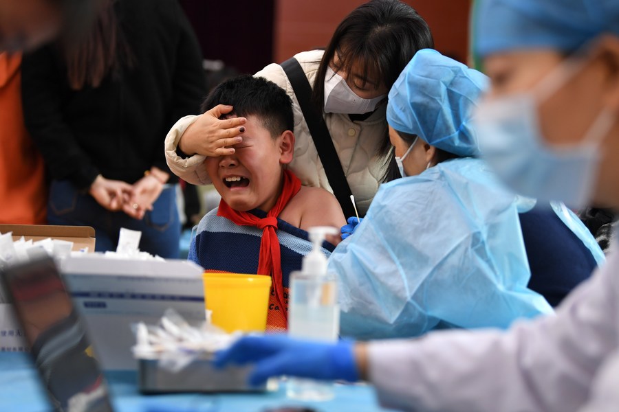 A student receives a dose of COVID-19 vaccine in Hefei, east China's Anhui Province, Nov. 12, 2021. (Xinhua/Liu Junxi)