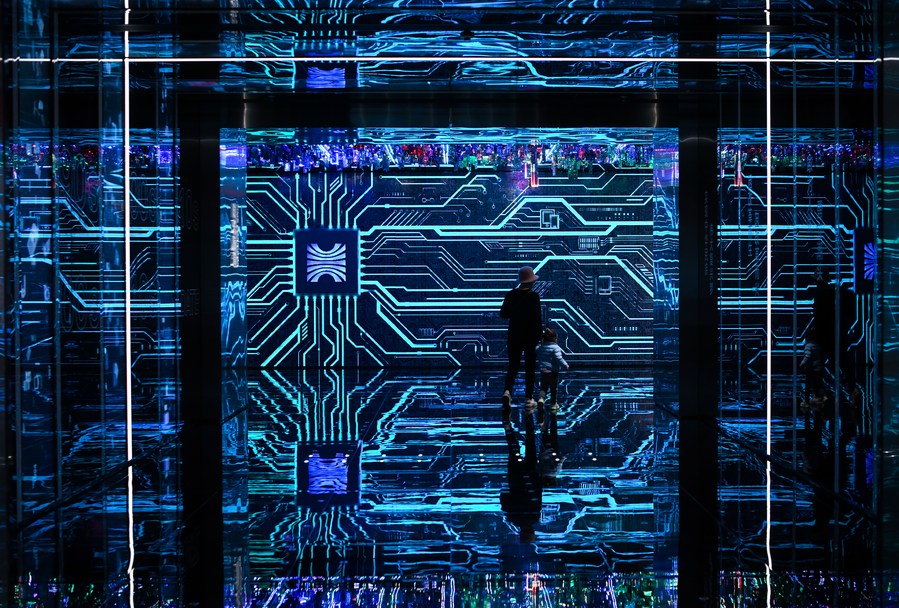 People visit the Huaqiangbei Museum in Shenzhen, south China's Guangdong Province, Jan. 7, 2021. Huaqiangbei is a renowned commercial area in Shenzhen for electronics markets. (Xinhua/Liang Xu)
