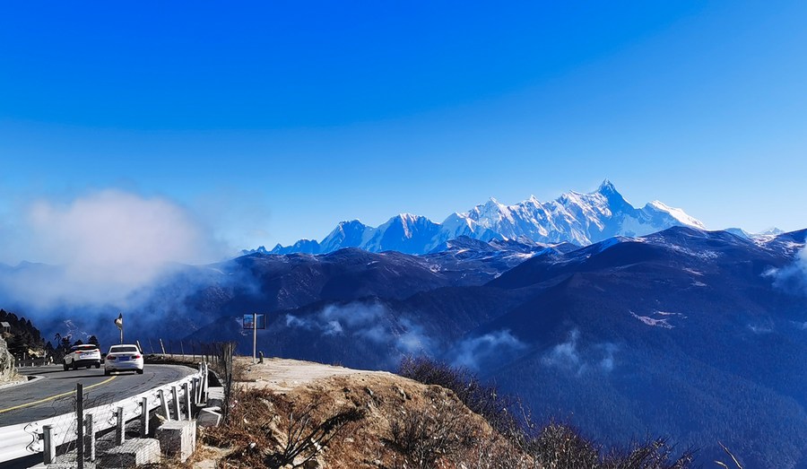 Photo taken on Dec. 16, 2021 with a mobile phone shows Mount Namjagbarwa in southwest China's Tibet Autonomous Region. (Xinhua/Shen Hongbing)