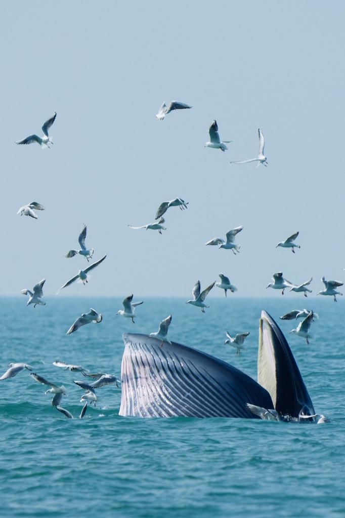 A Bryde's whale forages in waters off Weizhou Island in south China's Guangxi Zhuang Autonomous Region, Jan. 15, 2021. (Xinhua/Liu Jinhai)