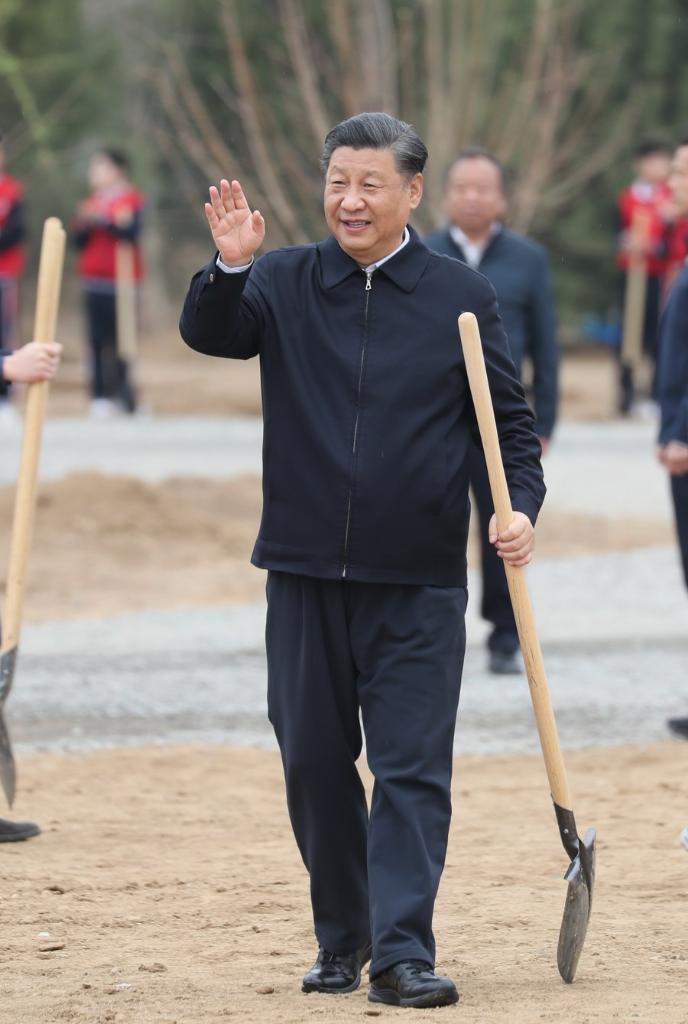 Chinese President Xi Jinping, also general secretary of the Communist Party of China Central Committee and chairman of the Central Military Commission, waves to the officials and people on-site during a tree-planting activity in Chaoyang District in Beijing, capital of China, April 2, 2021. The activity was also attended by other leaders including Li Keqiang, Li Zhanshu, Wang Yang, Wang Huning, Zhao Leji, Han Zheng and Wang Qishan. (Xinhua/Yao Dawei)