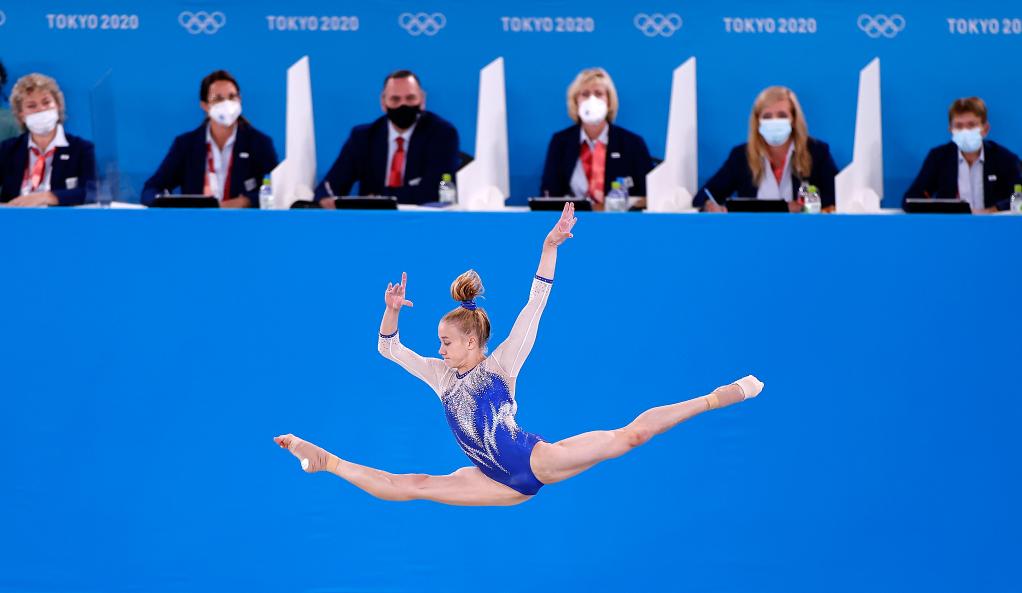 Viktoria Listunova of ROC competes in the floor exercise of the artistic gymnastics women's team final at the Tokyo 2020 Olympic Games in Tokyo, Japan, July 27, 2021. (Xinhua/Wang Lili)