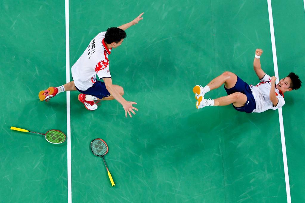 Wang Yilyu (L)/Huang Dongping of China celebrate after winning the badminton mixed doubles final match against their teammates Zheng Siwei/Huang Yaqiong at the Tokyo 2020 Olympic Games in Tokyo, Japan, July 30, 2021. (Xinhua/Chen Yichen)