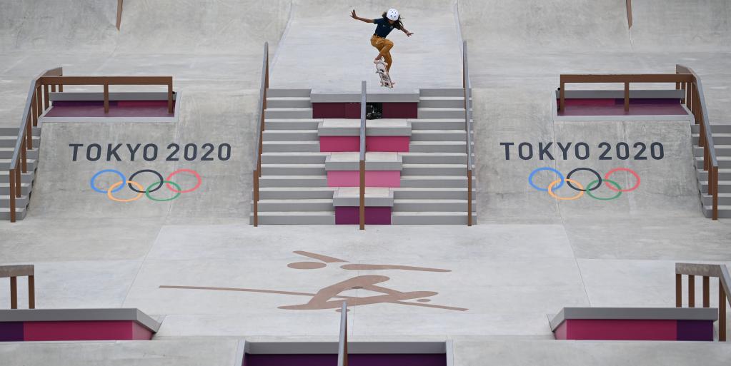 Rayssa Leal of Brazil competes during the women's street final of skateboarding at the Tokyo 2020 Olympic Games in Tokyo, Japan, July 26, 2021. (Xinhua/Li Ga)