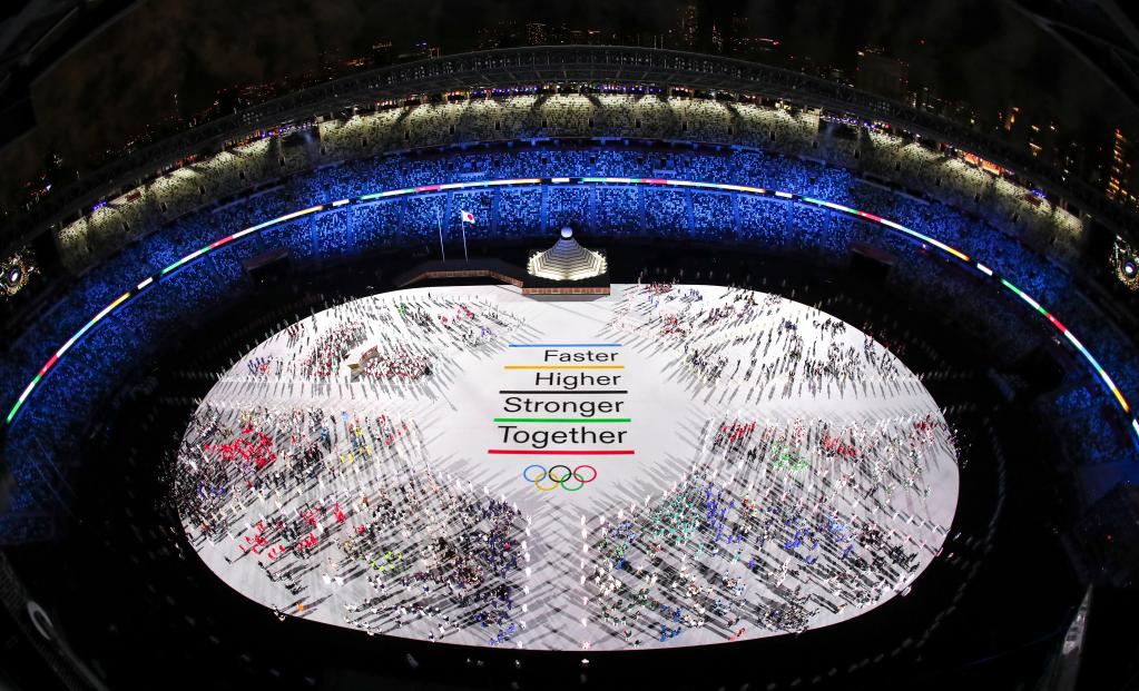 Photo taken on July 23, 2021 shows the Olympic Motto at the opening ceremony of Tokyo 2020 Olympic Games in Tokyo, Japan. (Xinhua/Xia Yifang)