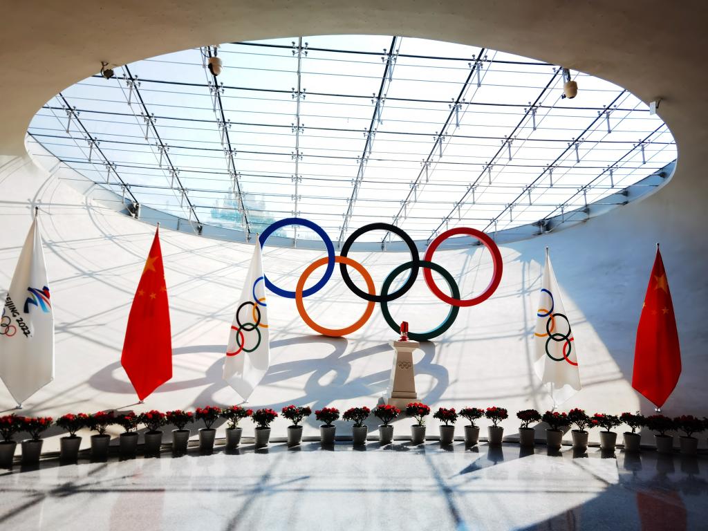 The Olympic flame for the 2022 Beijing Winter Olympics is on display at the Olympic Tower in Beijing, capital of China, Oct. 20, 2021. The Olympic flame, ignited for the Beijing 2022 Olympic Winter Games in Ancient Olympia in western Greece, arrived in Beijing in the morning on Oct. 20. A welcoming ceremony was held at the Olympic Tower, an iconic landmark from the 2008 Beijing Olympic Games. (Xinhua/Wang Yong)