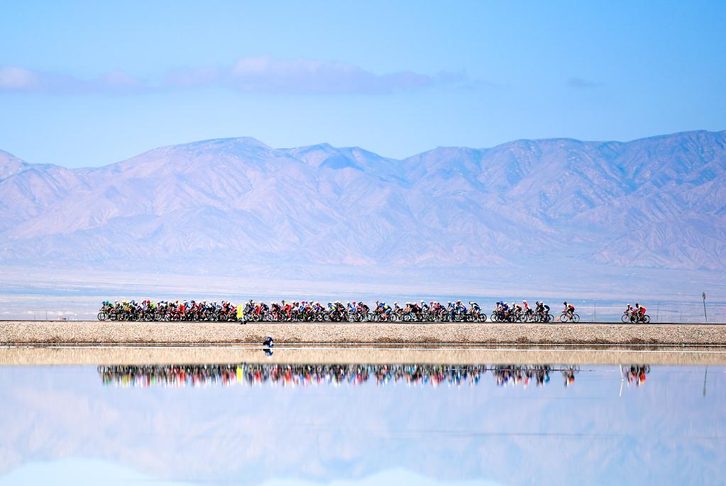 Competitors ride during the seventh stage of the 20th Tour of Qinghai Lake cycling race in northwest China, July 17, 2021. (Xinhua/Zhang Long)