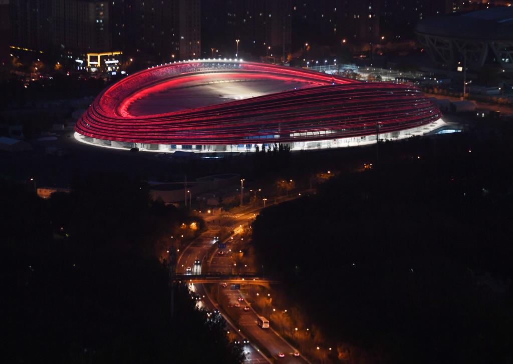 Picture taken with a drone on Oct. 28, 2021 shows an aerial view of National Speed Skating Oval in Beijing, capital of China. (Xinhua/Zhang Chenlin)