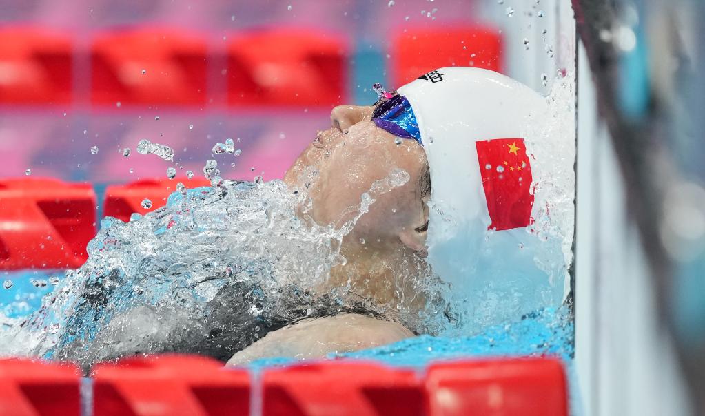 Lu Dong of China competes during the women's 50m backstroke S5 final of swimming event at the Tokyo 2020 Paralympic Games in Tokyo, Japan, Aug. 30, 2021. She took the gold with a new world record. (Xinhua/Cai Yang)
