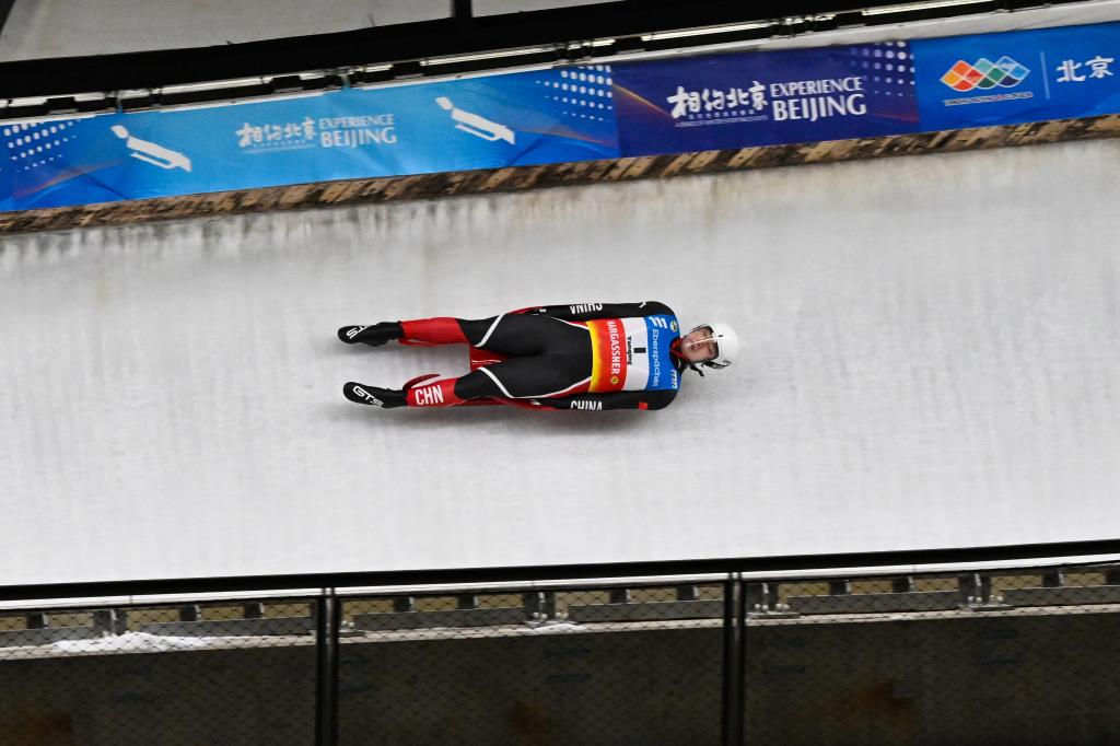 Fan Duoyao of China competes during the heat of men's singles luge at the Experience Beijing FIL Luge World Cup at the National Sliding Center in Yanqing, Beijing, Nov. 20, 2021. He's the first Chinese athlete qualified for the FIL Luge World Cup race. (Xinhua/Chen Yichen)