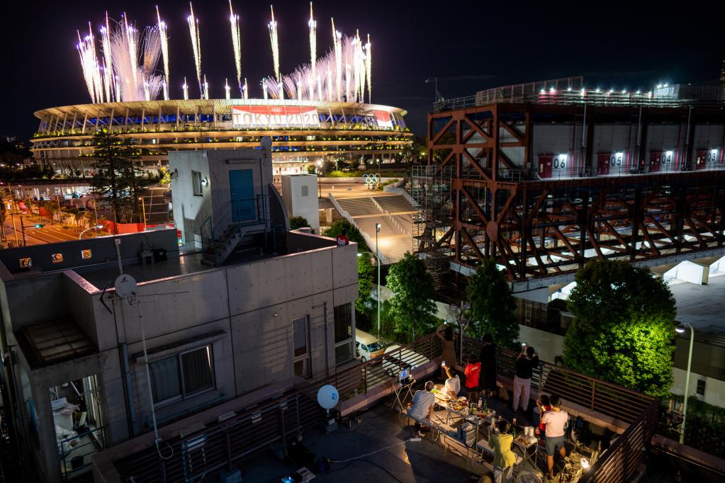 Fireworks explode over the Olympic Stadium during the closing ceremony of Tokyo 2020 Olympic Games in Tokyo, Japan, Aug. 8, 2021. (Xinhua/Zhang Xiaoyu)