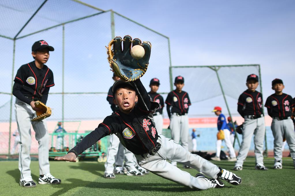 Niang Xianjia, a 13-year-old Tibetan student of a local boarding primary school, practices baseball in Xinghai County, northwest China's Qinghai Province, China on March 6, 2021. (Xinhua/Zhang Hongxiang)