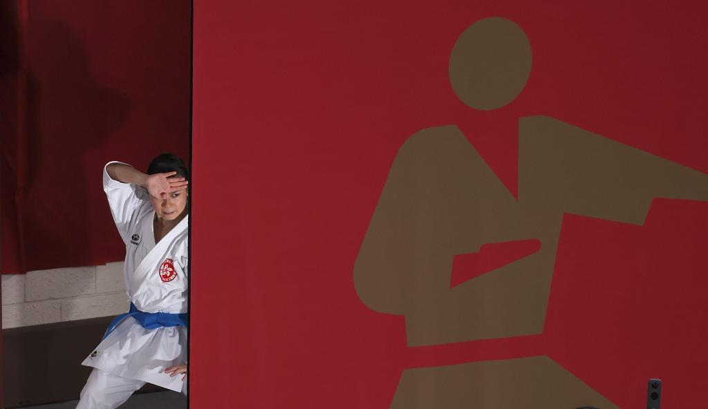 Lau Mo Sheung Grace of China's Hong Kong practices before the women's kata ranking round of karate at Tokyo 2020 Olympic Games in Tokyo, Japan, Aug. 5, 2021. (Xinhua/Cao Can)