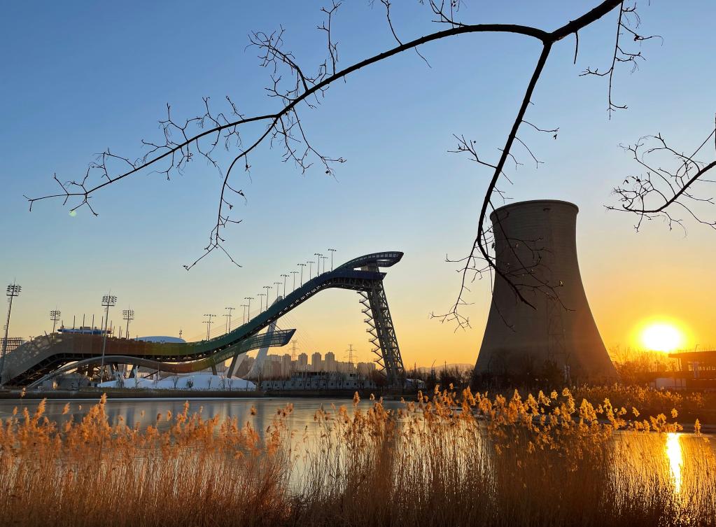 Photo taken on Dec. 28, 2021 shows a view of Big Air Shougang, the venue for Beijing 2022 Winter Olympic Games in Beijing, capital of China. Big Air Shougang located in the Beijing competition zone is set to host freestyle skiing and snowboard big air events. (Xinhua/Tao Xiyi)