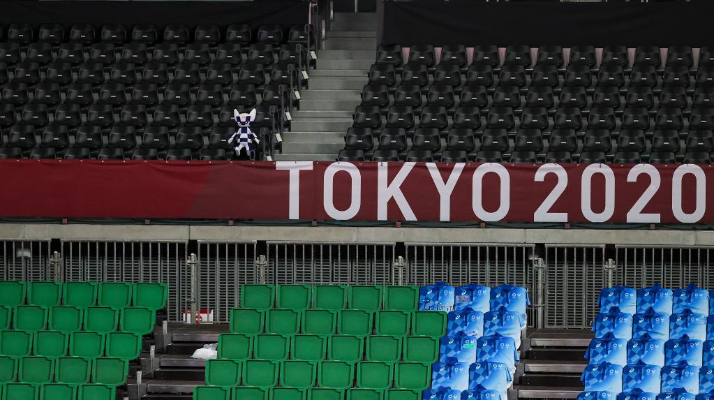 Tokyo 2020 Mascot robot Miraitowa is seen with empty seats around at the Musashino Forest Sport Plaza, Tokyo at the Tokyo Olympic Games in Tokyo, Japan, July 31, 2021. (Xinhua/Cao Can)