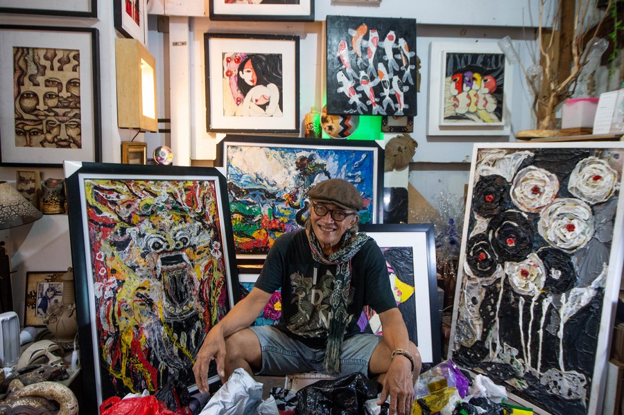 JAKARTA, Jan. 7 (Xinhua) -- Dwiyono, 66, an Indonesian artist previously famous for his paintings using eggshell waste, recently found a new way of transforming plastic waste into a work of art.