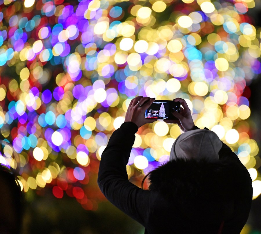 A woman takes photos of a Christmas tree at Piazza Venezia in Rome, Italy, on Dec. 11, 2021. (Xinhua/Jin Mamengni)■
