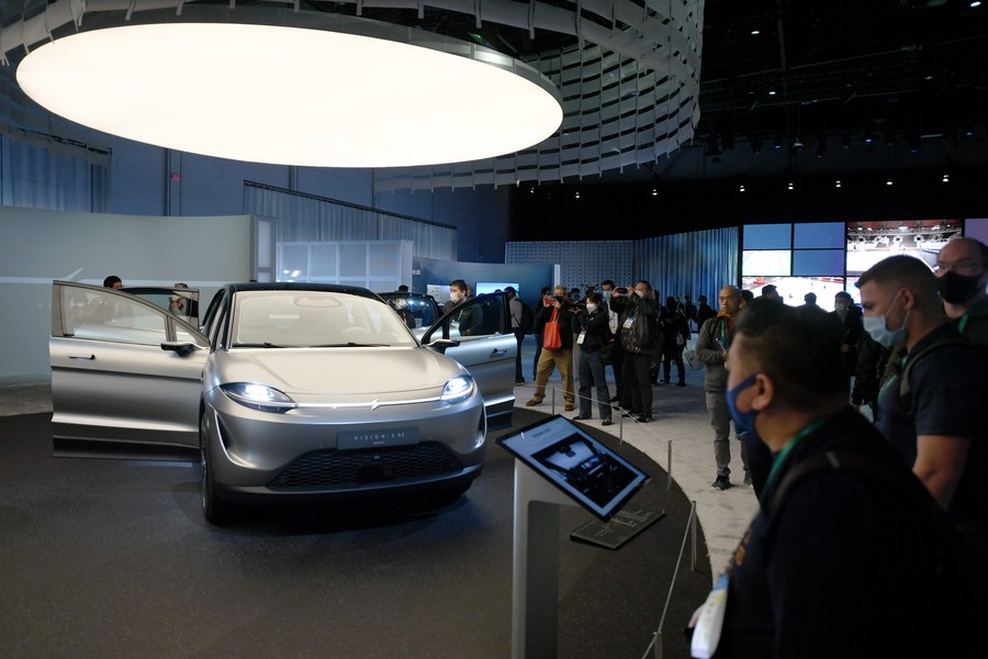 People visit the 2022 Consumer Electronics Show (CES) in Las Vegas, the United States, Jan. 5, 2022. (Xinhua/Wu Xiaoling)