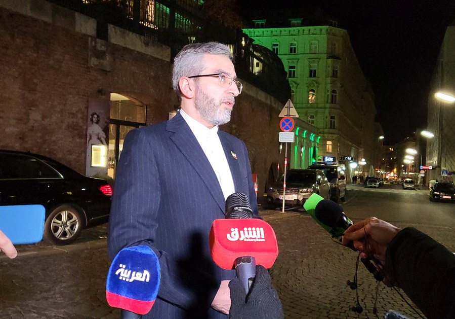 Iran's chief nuclear negotiator in the Vienna talks Ali Bagheri Kani speaks to reporters after a meeting of the Joint Comprehensive Plan of Action (JCPOA) Joint Commission in Vienna, Austria, on Dec. 27, 2021. (Xinhua/Guo Chen)