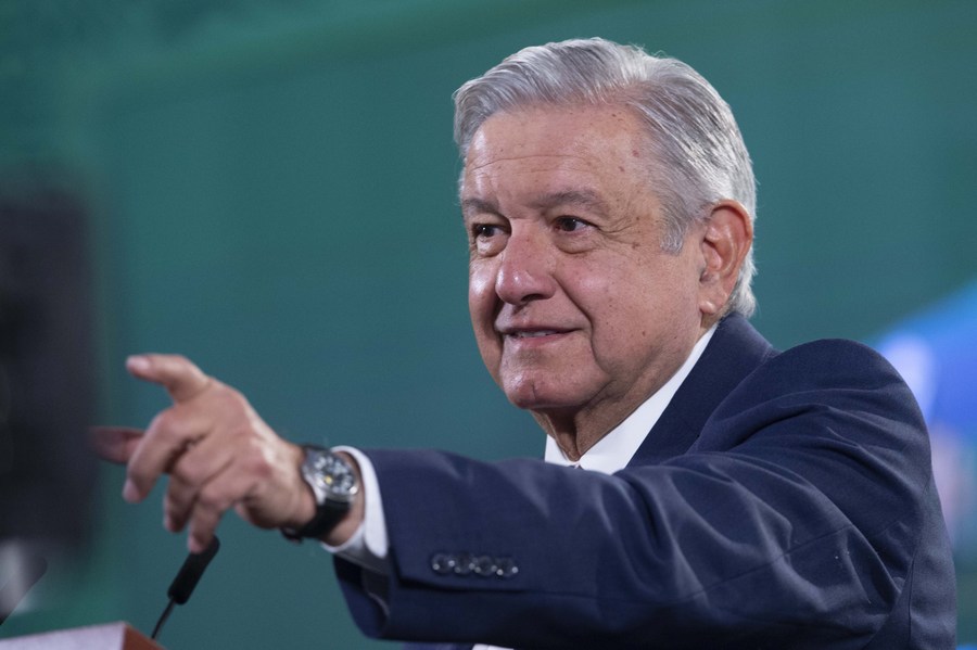 Mexican President Andres Manuel Lopez Obrador speaks during his morning press conference at National Palace, in Mexico City, capital of Mexico, on Jan. 10, 2022. (Str/Xinhua)