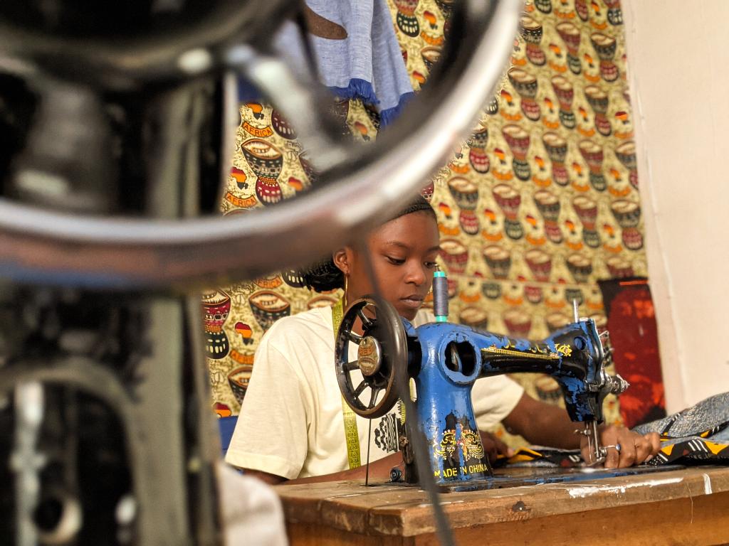 A woman makes clothes with a sewing machine in Goma, northeastern Democratic Republic of the Congo (DRC), on Jan. 5, 2022. (Xinhua/Zanem Nety Zaidi)