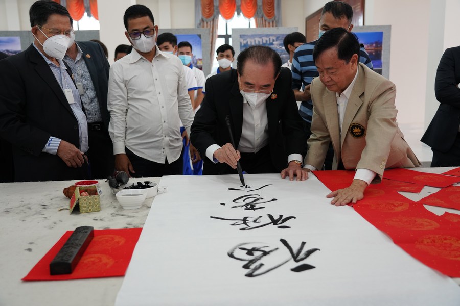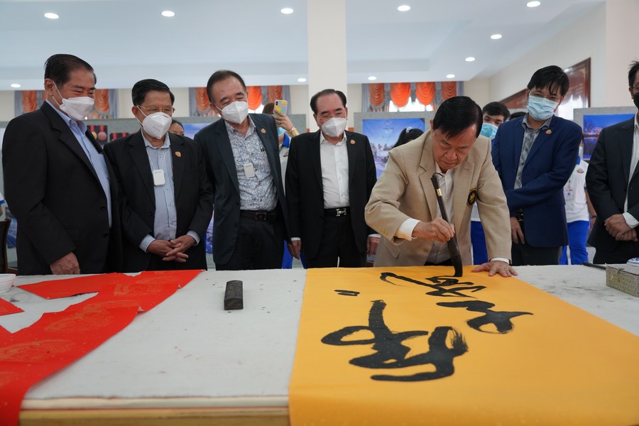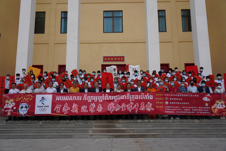 During the half-day event held in the Cambodian capital Phnom Penh, participants wrote Chinese calligraphy to voice their support for the Beijing Winter Olympics and offer best wishes for the Spring Festival.