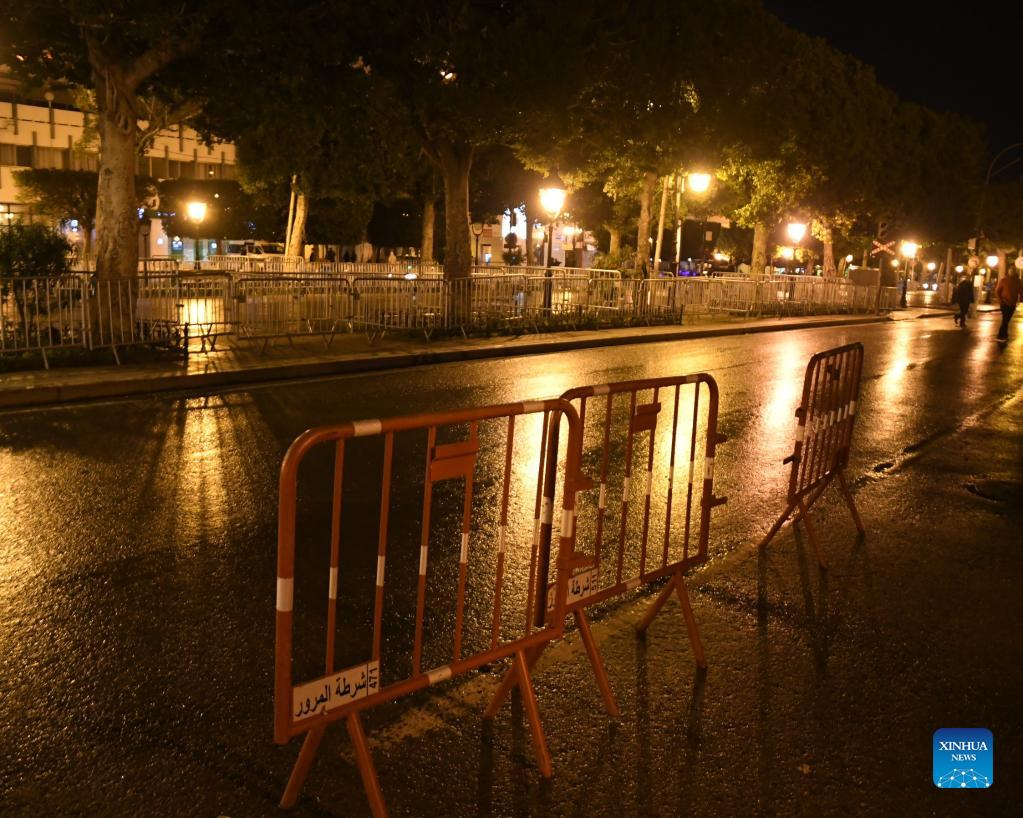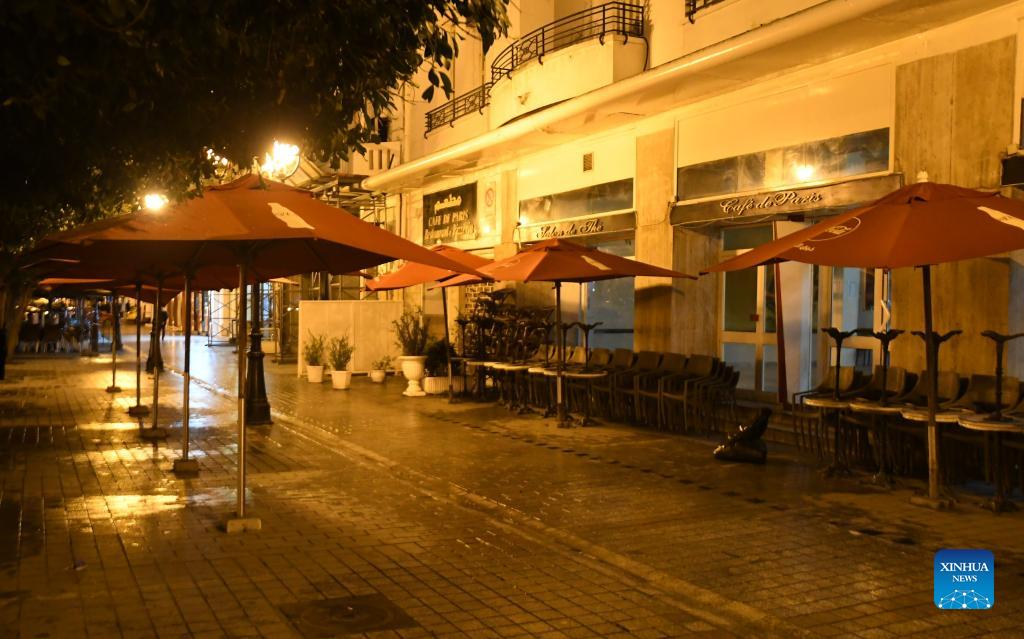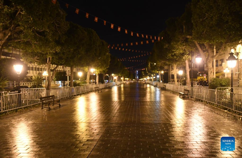 Photo taken on Jan. 13, 2022 shows an empty street in central Tunis, Tunisia. Tunisian government announced on Wednesday a curfew across the country to curb the spread of the new wave of the coronavirus. "The curfew will be in effect from Thursday for a period of two weeks renewable, depending on the epidemiological situation in the country," the government said in a statement. (Photo by Adel Ezzine/Xinhua)