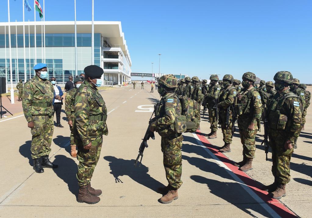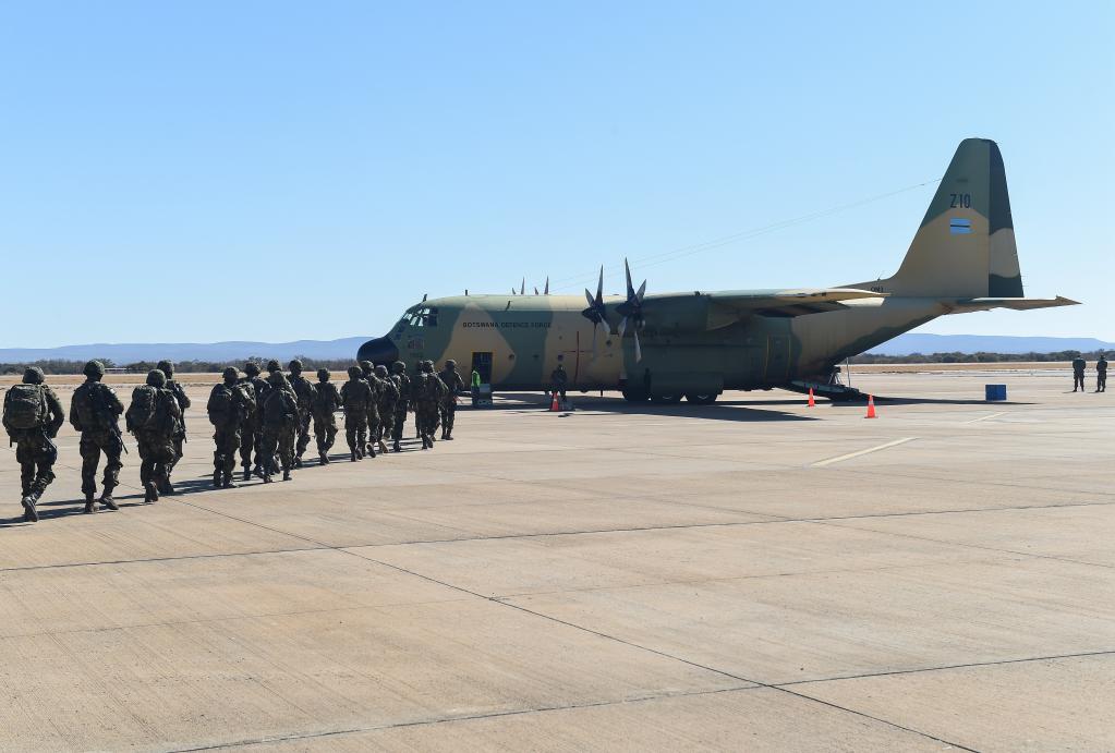 The Botswana Defence Force (BDF) soldiers depart from Sir Seretse Khama International Airport in Gaborone, Botswana, July 26, 2021. (Xinhua/Tshekiso Tebalo)
