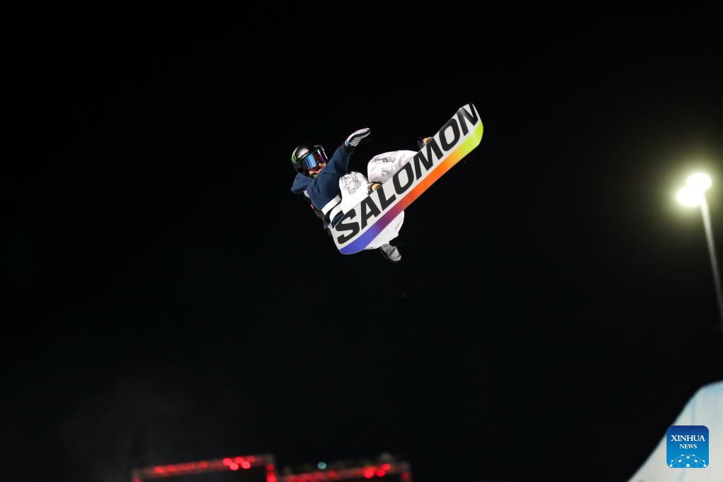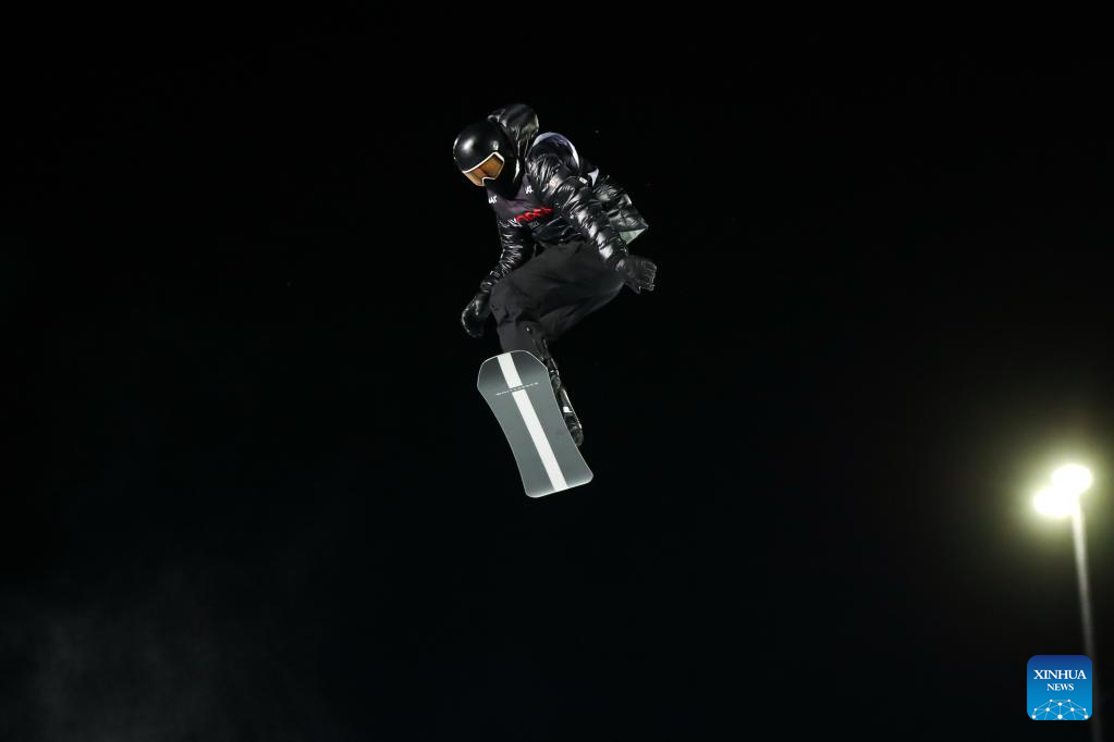 Shaun White of the United States competes during the men's snowboard halfpipe final at FIS Snowboard World Cup 2022 in Laax, Switzerland, Jan. 15, 2022. (Xinhua/Zhang Cheng)
