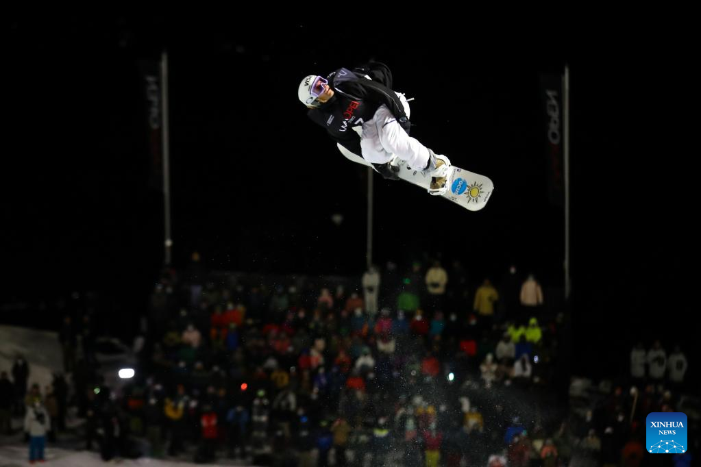 Ono Mitsuki of Japan competes during the women's snowboard halfpipe final at FIS Snowboard World Cup 2022 in Laax, Switzerland, Jan. 15, 2022. (Xinhua/Zhang Cheng)