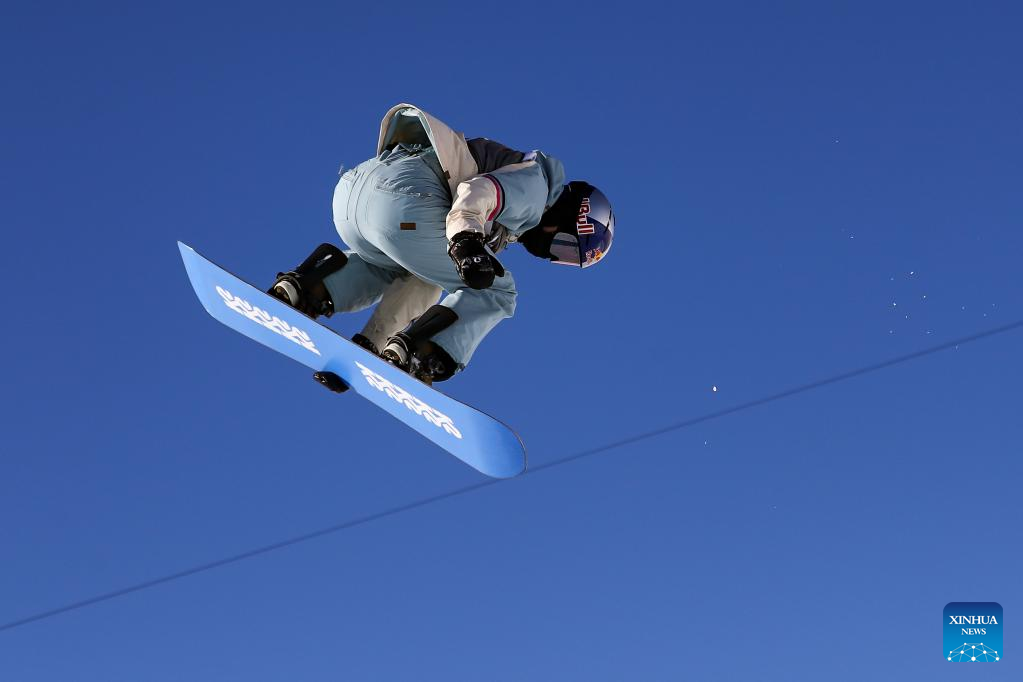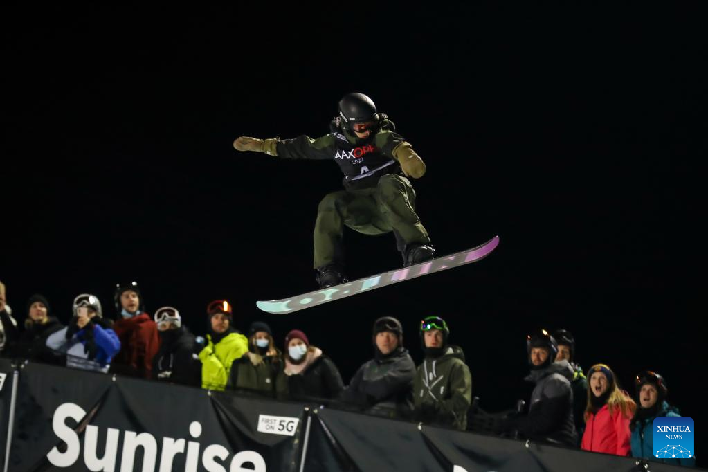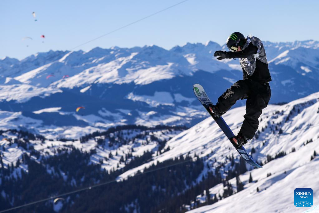 Tess Coady of Australia competes during the women's snowboard slopestyle final at FIS Snowboard World Cup 2022 in Laax, Switzerland, Jan. 15, 2022. (Xinhua/Zhang Cheng)