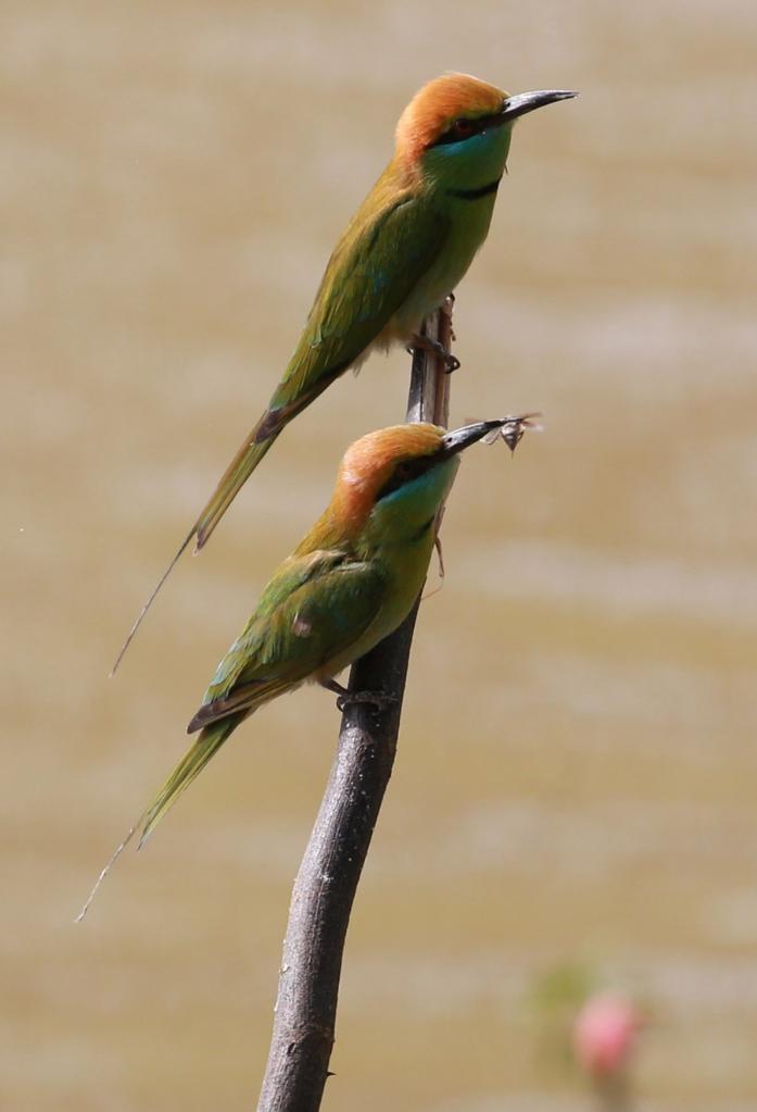 Take a look at the Chestnut-headed Bee-eaters seen at the sanctuary. As the name suggests, bee-eaters predominantly eat insects, especially bees, wasps and hornets, which are caught in the air by sorties from an open perch.