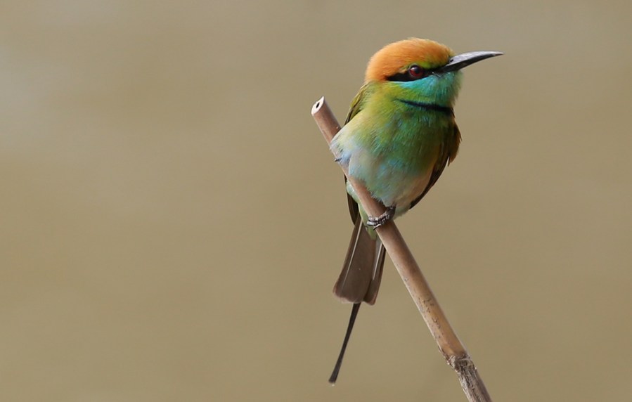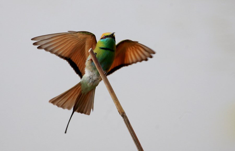 A Chestnut-headed Bee-eater is seen at the Moeyungyi Wetland Wildlife Sanctuary in Bago region, Myanmar, Jan. 16, 2022. (Xinhua/U Aung) ■