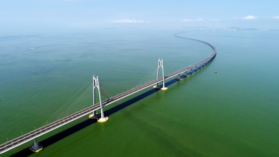 Aerial photo taken on July 11, 2018 shows the Hong Kong-Zhuhai-Macao Bridge. (Xinhua/Liang Xu)