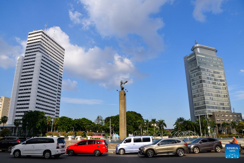 Photo taken on Jan. 23, 2022 shows the Selamat Datang Monument in Jakarta, Indonesia. Indonesian lawmakers on Jan. 18 passed a law on the relocation of the nation's capital to the island of Kalimantan, which the country shares borders with Malaysia and Brunei, from the most populated island of Java. Nusantara, which the new capital is called, will be built in two districts in East Kalimantan -- Penajam Paser Utara and Kutai Kartanegara. It is set to occupy about 256,000 hectares of land. Nusantara will serve as the center of government, while Jakarta would remain the business and economic center of Indonesia, Southeast Asia's biggest economy. (Xinhua/Xu Qin)
